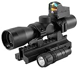 NcStar Tactical Triple Threat Combo Scope Red Dot Sight Flahshlight Rings Mount